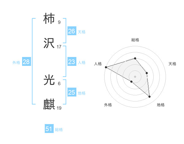 柿沢 光麒さんを姓名の画数から五運を鑑定