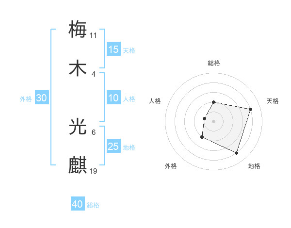 梅木 光麒さんの天格は15画の4点!