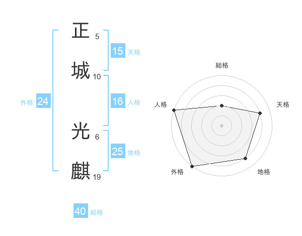 正城 光麒さんの外格は24画の5点!