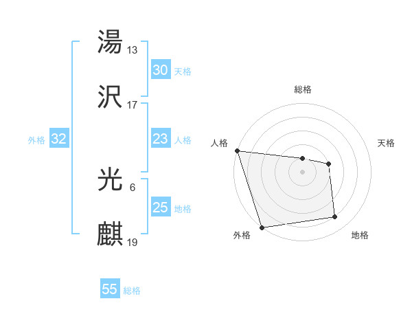 湯沢 光麒さんの総格は55画の1点!