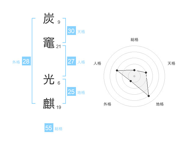 炭竈 光麒さんの総格は55画の1点!