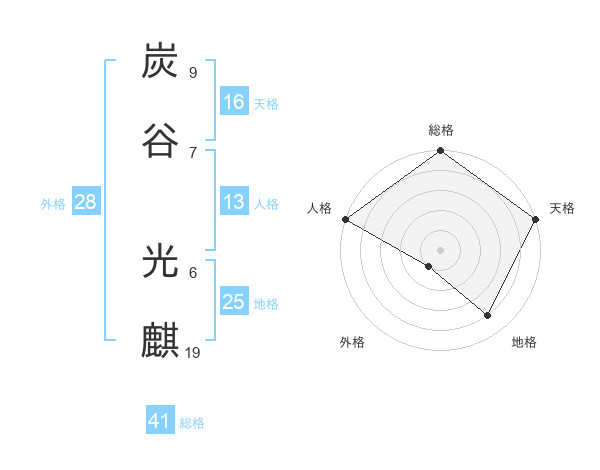 炭谷 光麒さんの天格は16画の5点!