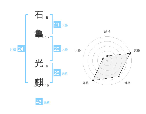 石亀 光麒さんの総格は46画の1点!