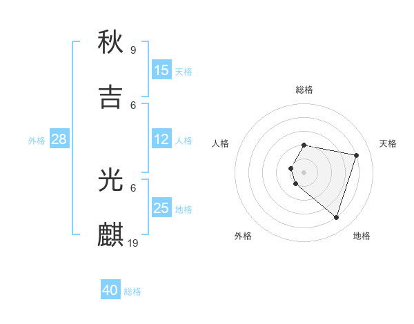秋吉 光麒さんの総格は40画の2点
