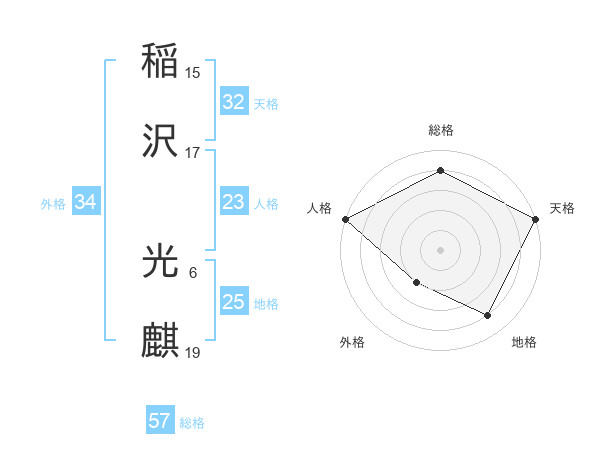 稲沢 光麒さんを姓名の画数から五運を鑑定