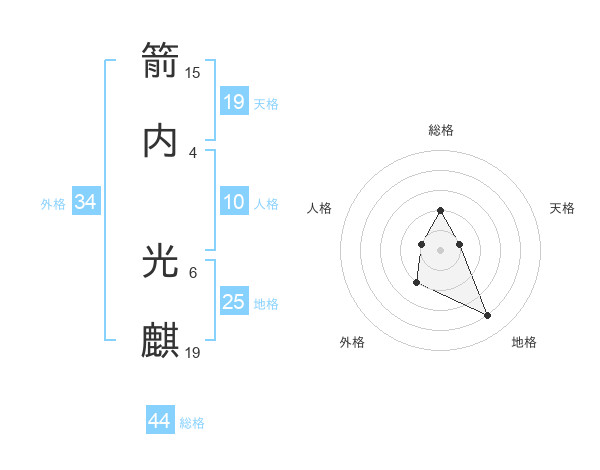 箭内 光麒さんの総格は44画の2点!