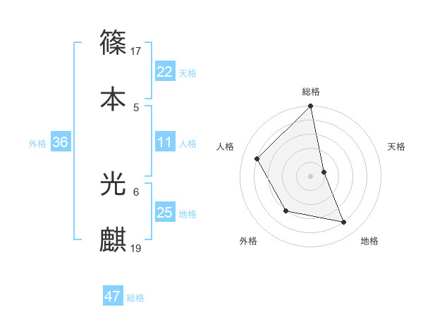 篠本 光麒さんの総格は47画の5点!