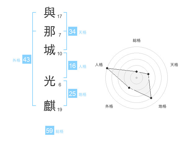 與那城 光麒さんを姓名の画数から五運を鑑定