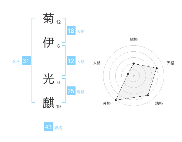 菊伊 光麒さんを姓名の画数から五運を鑑定