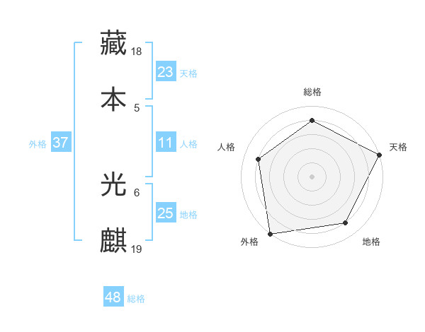 藏本 光麒さんの天格は23画の5点!