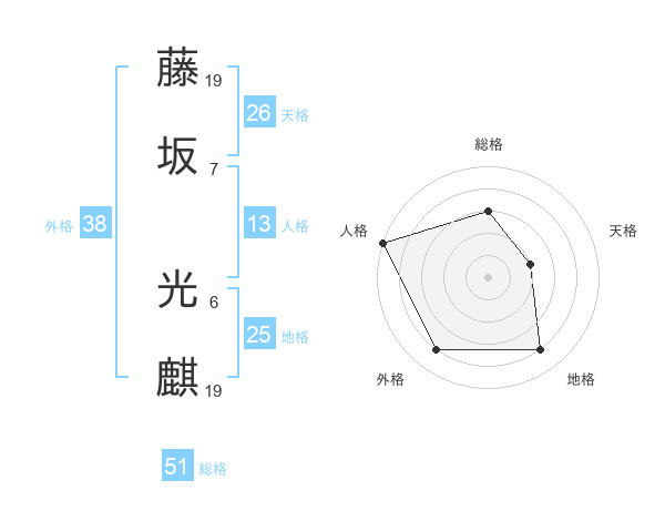 藤坂 光麒さんを姓名の画数から五運を鑑定