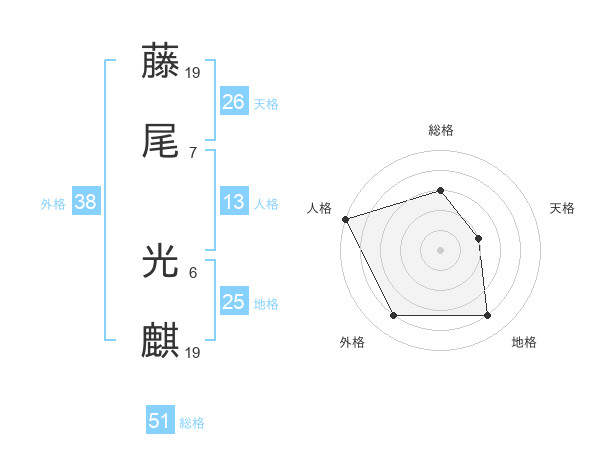 藤尾 光麒さんの天格は26画の2点!