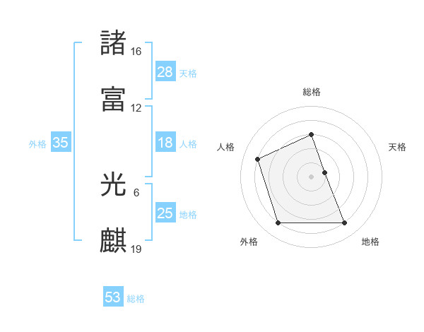 諸富 光麒さんを姓名の画数から五運を鑑定