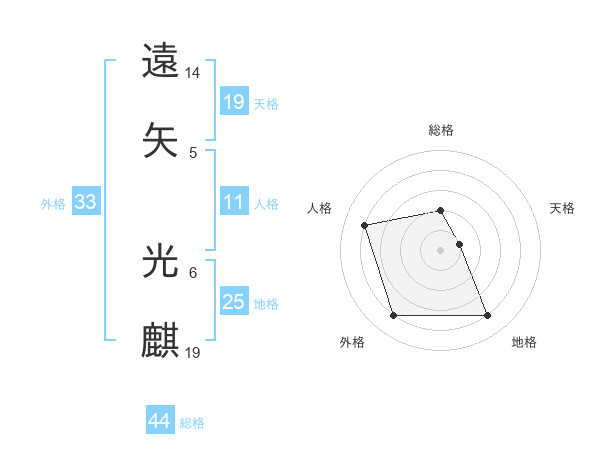 遠矢 光麒さんを姓名の画数から五運を鑑定