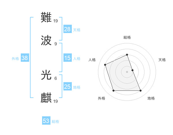 難波 光麒さんの総格は53画の3点!