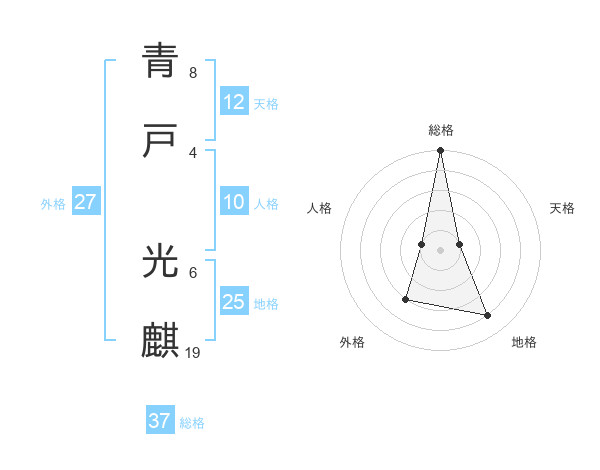 青戸 光麒さんの総格は37画の5点!
