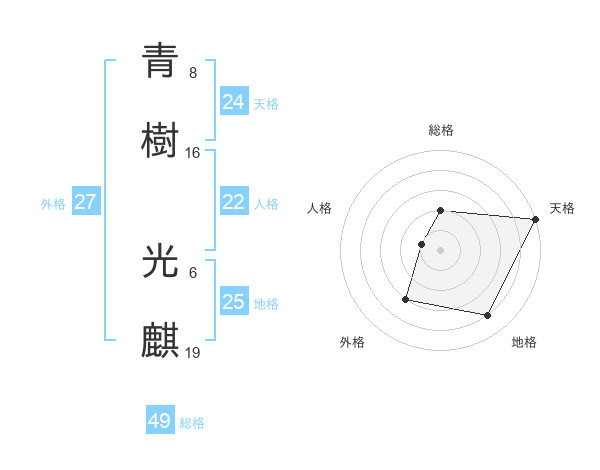 青樹 光麒さんの天格は24画の5点!
