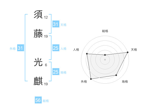 須藤 光麒さんの天格は31画の5点!