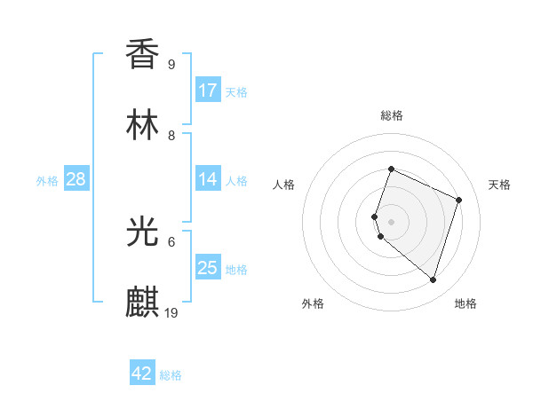 香林 光麒さんの総格は42画の3点!