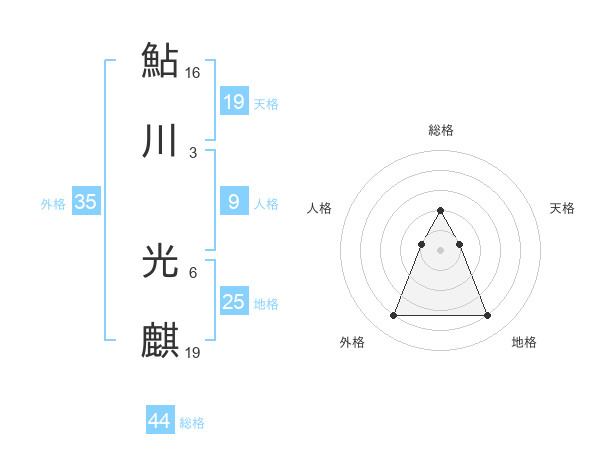 鮎川 光麒さんを姓名の画数から五運を鑑定