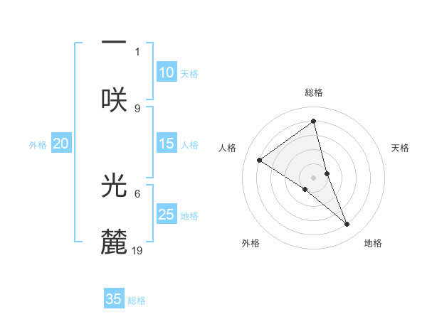 一咲 光麓さんの総格は35画の4点!