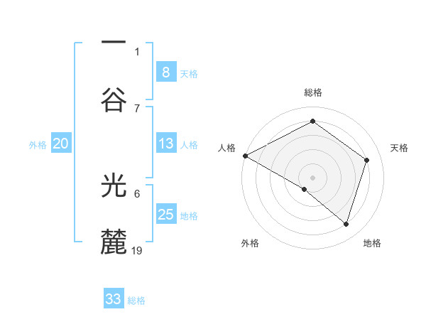 一谷 光麓さんを姓名の画数から五運を鑑定