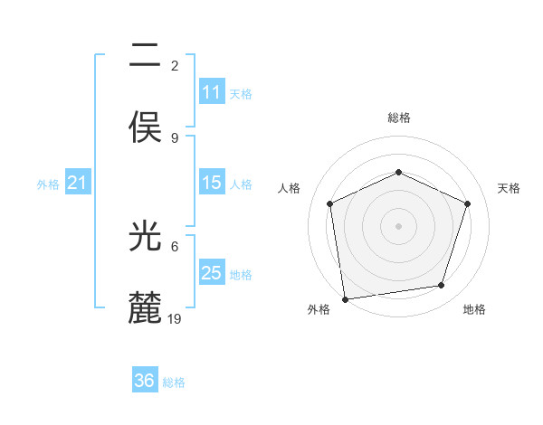 二俣 光麓さんの天格は11画の4点!