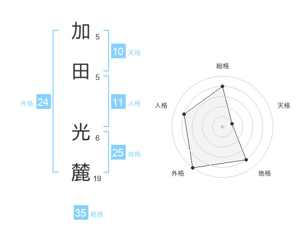 加田 光麓さんの総格は35画の4点!