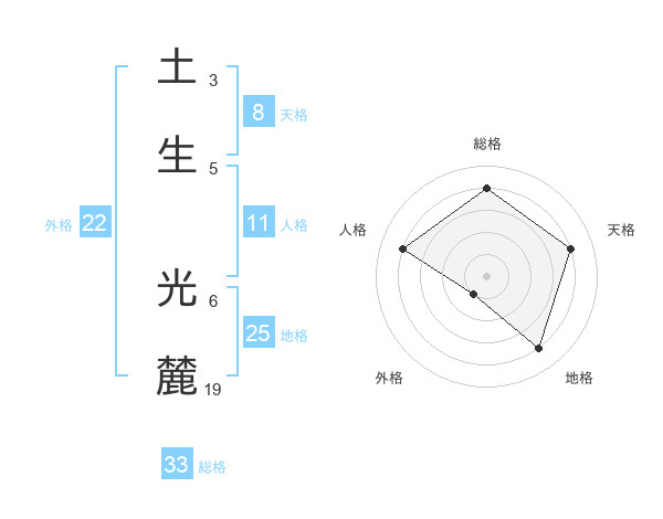 土生 光麓さんの総格は33画の4点!