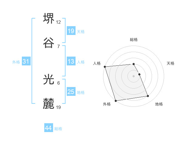 堺谷 光麓さんの総格は44画の2点!