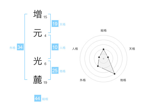 増元 光麓さんの総格は44画の2点!