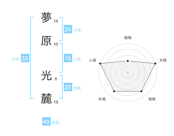 夢原 光麓さんの天格は24画の5点!