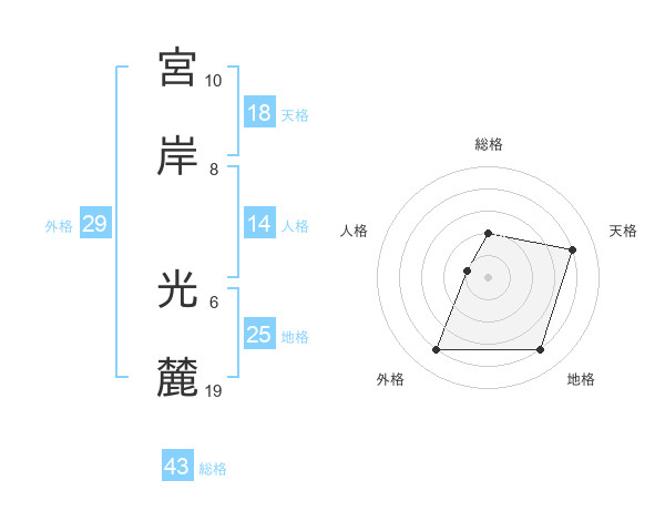 宮岸 光麓さんの総格は43画の2点!