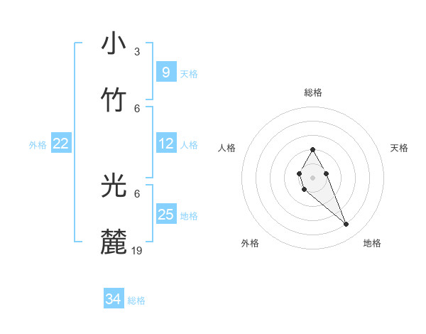 小竹 光麓さんの総格は34画の2点!