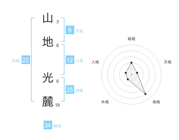 山地 光麓さんの総格は34画の2点!