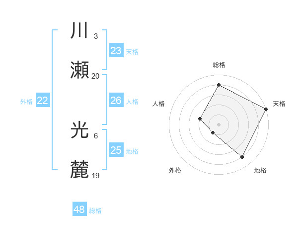 川瀬 光麓さんの総格は48画の4点!
