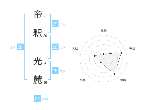 帝釈 光麓さんを姓名の画数から五運を鑑定