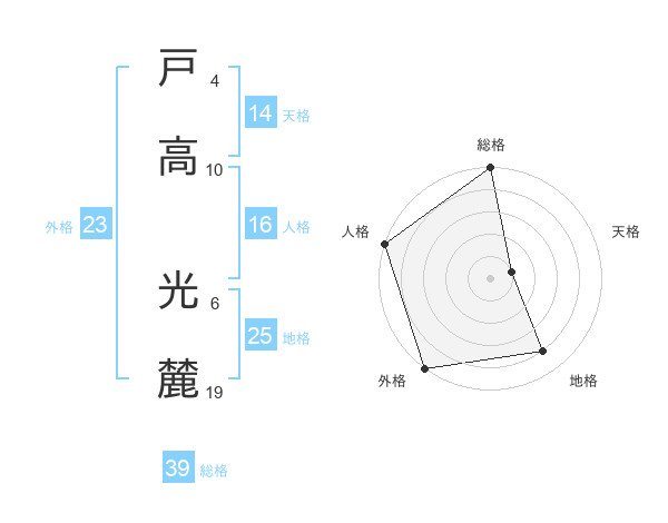 戸高 光麓さんの総格は39画の5点!