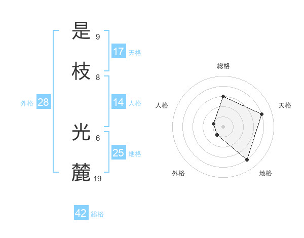 是枝 光麓さんの総格は42画の3点!