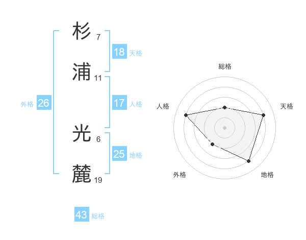 杉浦 光麓さんの総格は43画の2点!