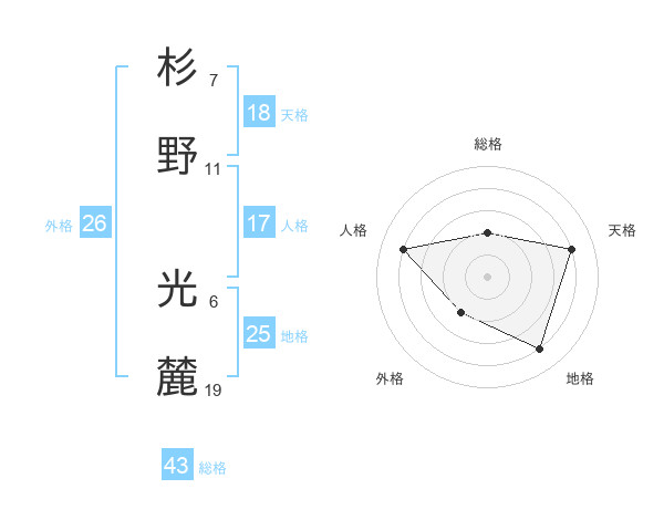 杉野 光麓さんの総格は43画の2点!