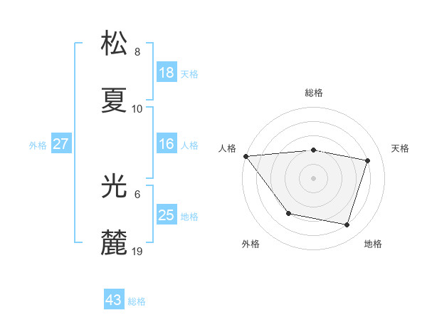 松夏 光麓さんを姓名の画数から五運を鑑定