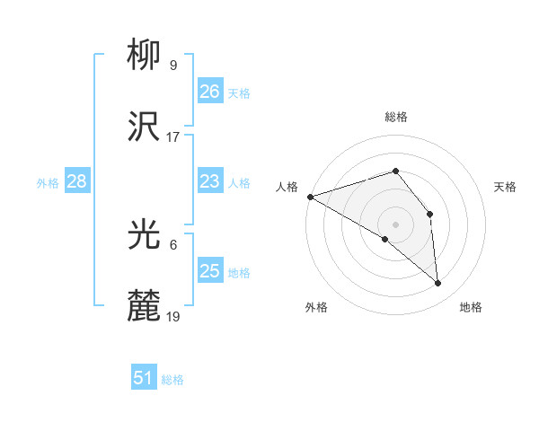 柳沢 光麓さんの総格は51画の3点!