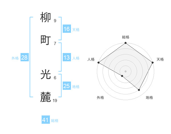柳町 光麓さんを姓名の画数から五運を鑑定