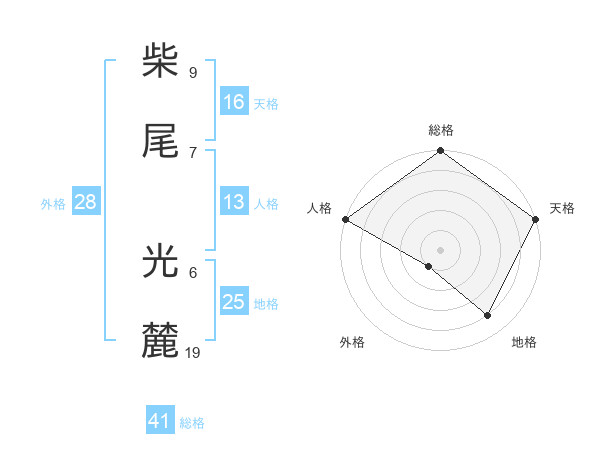 柴尾 光麓さんの天格は16画の5点!