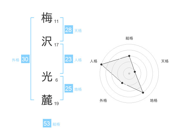 梅沢 光麓さんの総格は53画の3点!