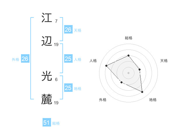 江辺 光麓さんの総格は51画の3点!