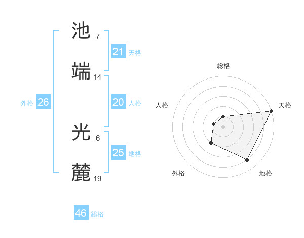 池端 光麓さんの総格は46画の1点!