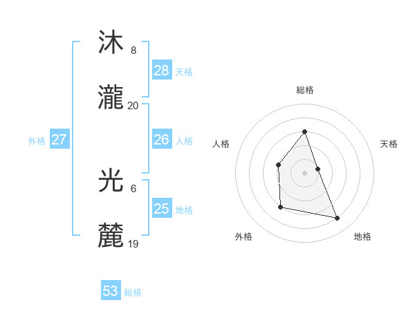 沐瀧 光麓さんの総格は53画の3点!