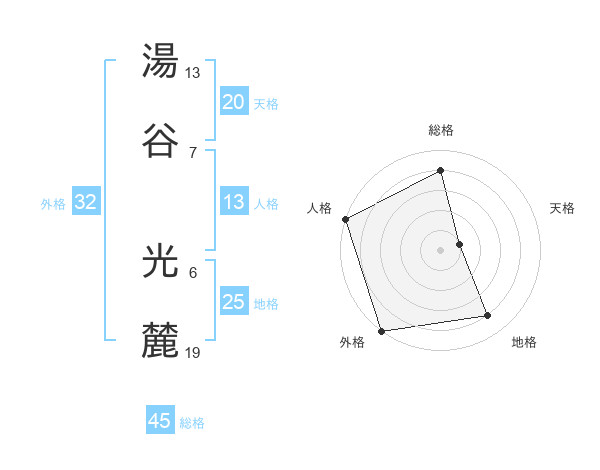 湯谷 光麓さんの総格は45画の4点!